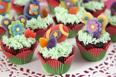 Frost cooled cupcakes or cake with green tinted frosting or pipe to look like grass.