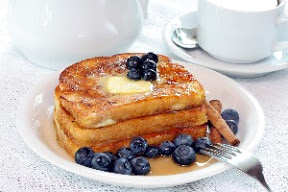 3.Over medium-low heat, melt 1 tablespoon of butter in a 10 inch nonstick saute pan. Place 2 slices of bread at a time into the pan and cook until golden brown, approximately 2 to 3 minutes per side. Remove from pan and place on rack in oven for 5 minutes. Repeat with all 8 slices. Serve immediately with maple syrup, whipped cream or fruit.