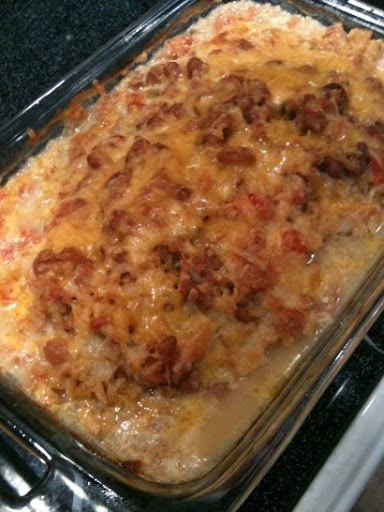 If you are making the casserole version of this dish, stir in the rice and beans as well. Pour the mixture over the chicken, top with shredded cheese, and bake in the oven at 350ºF for 30-40 minutes.