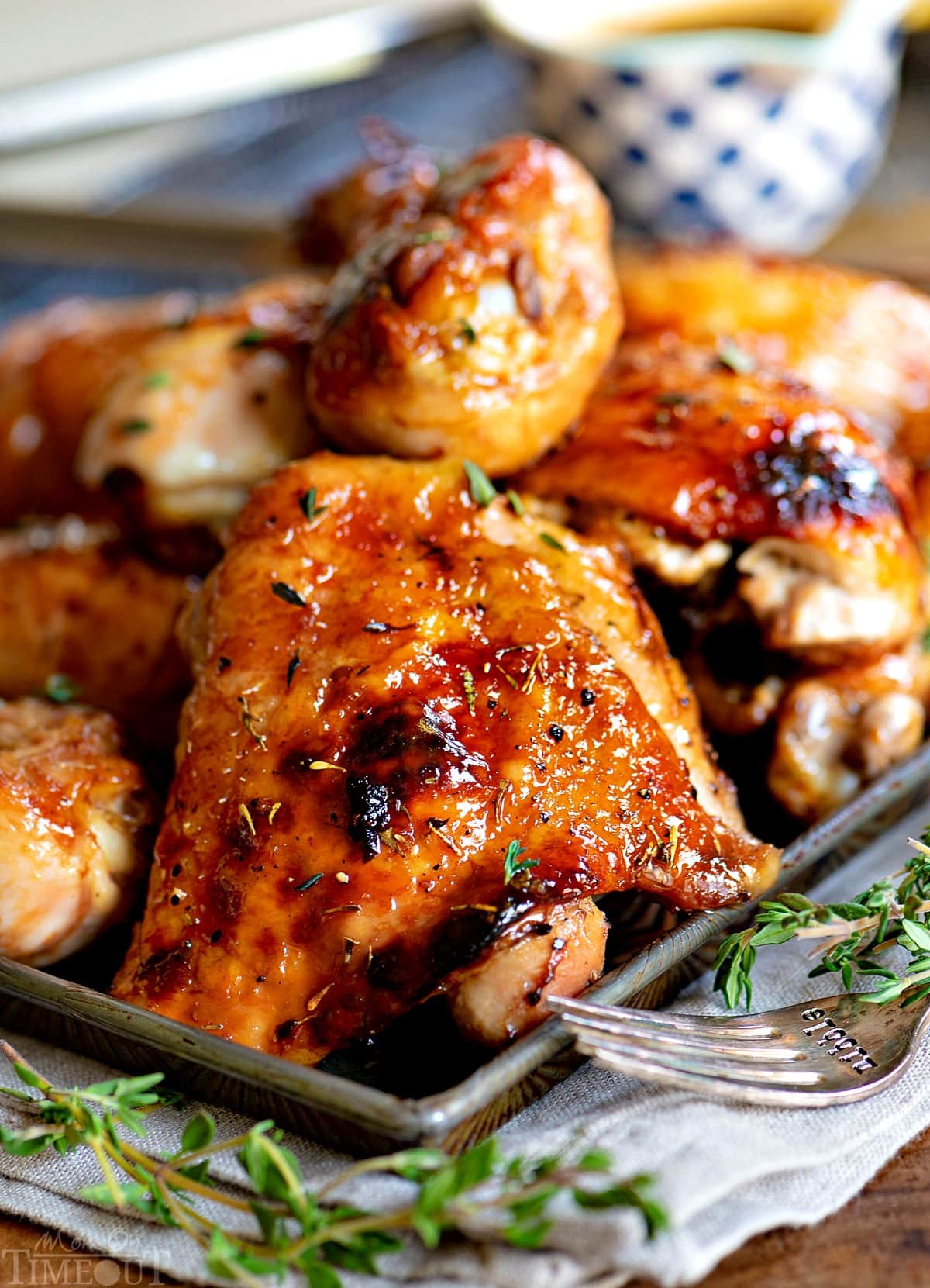Roast for 20 to 25 minutes, or until chicken is cooked through, brushing the glaze on two more times during roasting. Serve immediately.