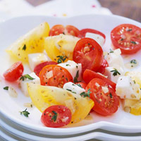 • 2 1/2 cups whole red grape tomatoes, yellow pear tomatoes, cherry tomatoes, and/or small yellow tomatoes