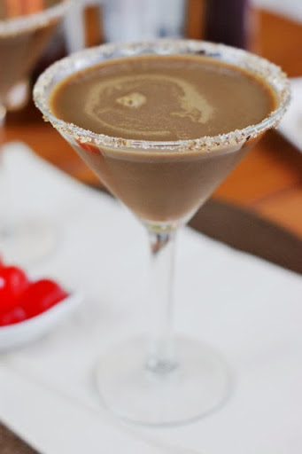 To make this cocktail even more decadent than it already is, embellish the rim of your martini glass with a little shaved chocolate. I like to mix a bit of granulated and turbinado sugar in with the chocolate. It looks extra pretty that way!