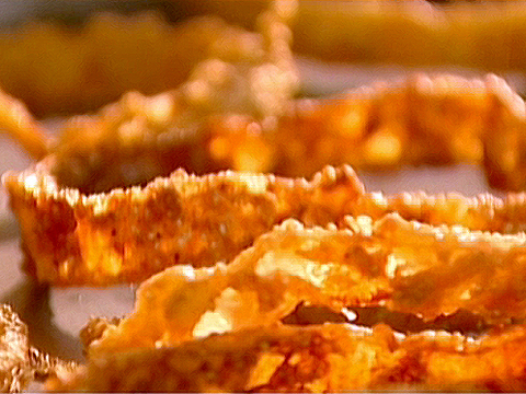When you're ready to fry the onion rings, preheat the oven to 200 degrees F. Line a baking sheet with paper towels.