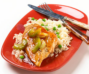 Adding a glaze of jalapeno pepper and Dijon-style mustard is a tongue-tingling way to dress up succulent chicken breasts for this low-calorie, low-fat dinner.