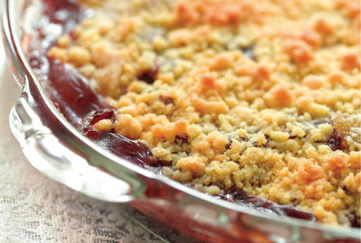 2. Mix together apples and cranberry sauce. Pour on top of crumbs.