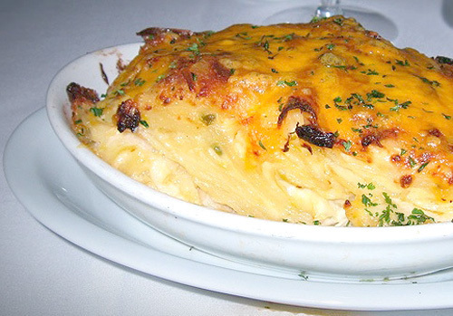 Cover with plastic wrap and then with aluminum foil. Bake in 350°F. oven for 35 to 45 minutes. Remove wrap and foil and bake an additional 10 to 15 minutes to brown top.