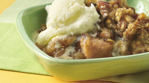 3 Cover; cook on Low heat setting 4 to 6 hours. Serve apple crisp with ice cream.