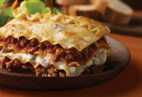 You can feed up to six people with this hearty lasagna recipe featuring ground beef in a creamy mushroom sauce layered with pasta, cheese and Italian tomato sauce.