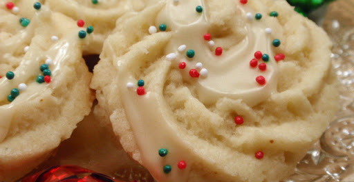 I’ve never been an eggnog drinking kind of person. That being said, as it is a traditional holiday flavour, I thought it might be fun to experiment with untraditional uses for it. So far, I have botched a batch of fudge, made some yummy hot chocolate (simply use eggnog instead of milk when making your usual recipe/mix), and I’ve come up with these little gems. Delicate in texture and pretty on a platter, these spritz cookies were a favorite amongst my co-workers.