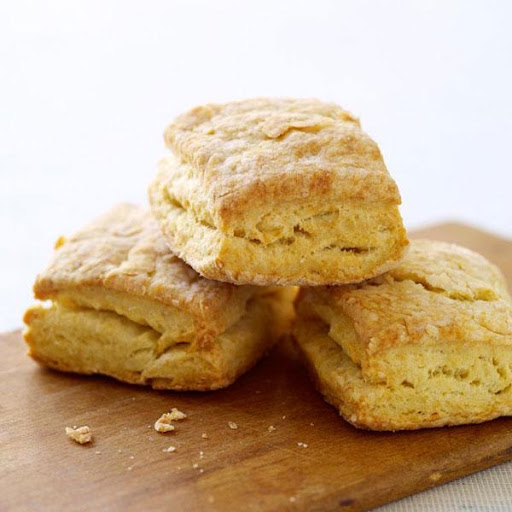 Working on a lightly floured surface, roll out dough into a 6- X 8-inch rectangle, about 1/2-inch thick. Cut dough into 12 equal pieces with a sharp knife. Place biscuits on an ungreased cookie sheet and bake until tops start to turn golden, about 10 to 12 minutes.