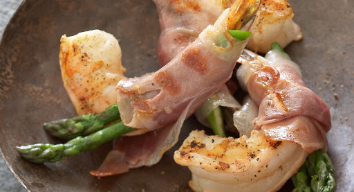 Grilled Jumbo Shrimp With Prosciutto and Asparagus