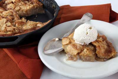 Pandowdy is a 19th century recipe of spiced apples covered with a biscuit type batter or crust, which is cut and pressed into the apples (“dowdied”) half way through baking. Before adding the crust, the apples are topped with a layer of Almond Paste for an extra special treat.