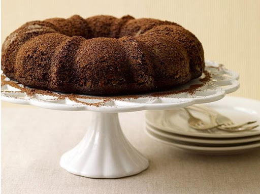 Pour batter into prepared pan; bake in center of oven until a tester inserted in center of cake comes out clean, about 55 to 60 minutes. Cool cake in pan for about 20 minutes and then turn out onto a baking rack to cool completely. Sprinkle with 1 teaspoon of cocoa powder before slicing into 14 pieces.
