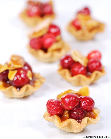 In a large bowl, mix together cranberries, almonds, and enough caramel to hold cranberries and almonds together, about 1 cup. Remove almond tarts from their molds and place on a parchment paper-lined baking sheet. Spoon cranberry mixture on top of frangipane; transfer to oven and bake until cranberries just begin to pop, 6 to 8 minutes. Drizzle with caramel and serve.