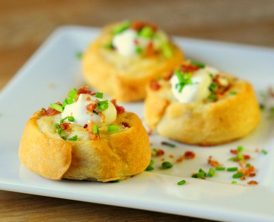 Roll up a cheesy bacon and potatoes mix in crescents for an awesome appetizer