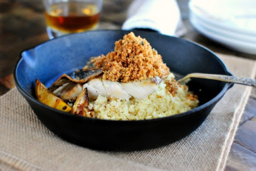 Serve over couscous or rice, top the fish with half of the brown butter crumbs and garnish with a few of the caramelized lemons.