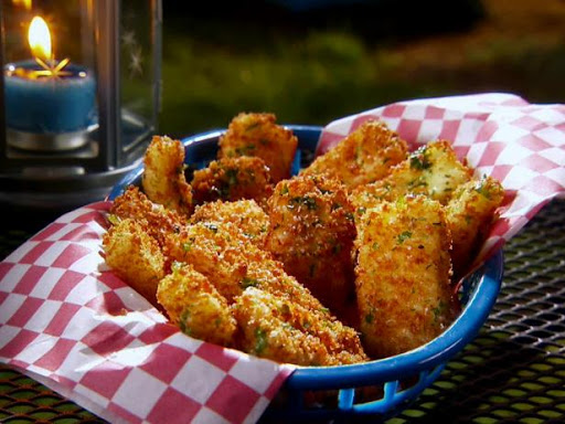 Begin by coating the mozzarella sticks in batches of 2, first dredging in the flour mixture and shaking off excess. Then dip in the egg mixture, letting any excess drip off. Finish by dredging in the panko crumb mixture and shaking any off excess. Transfer the breaded cheese sticks to a sheet pan greased with nonstick cooking spray. Cover and freeze until frozen, about 4 hours and up to 2 days (this will lessen the oozing of the cheese).