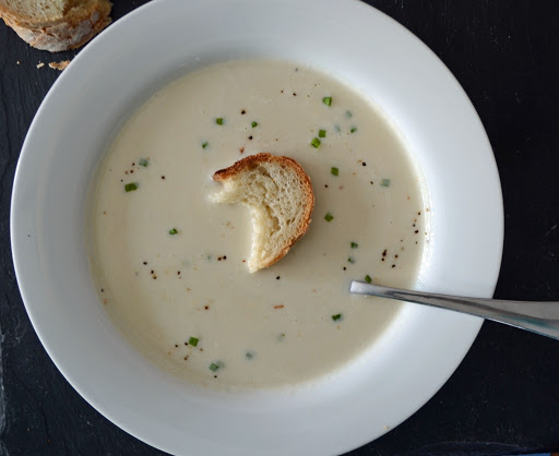 The garlic in this soup is sweet and not overwhelming when slow cooked with potatoes and onions and then pureed until smooth.