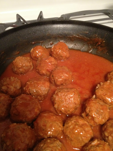 Combine meat, rice, egg, parsley, onion, salt, dash pepper and 1/4 cup soup. Mix well; shape into 20 small balls and place in skillet.