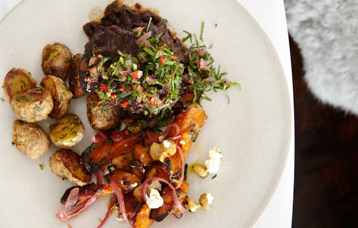 Place flour in a shallow bowl. Remove twine from roast and slice into eight 1" pieces; season with salt and pepper. Heat oil in a large non-stick skillet over medium heat. Work in batches, dredge meat in flour and cook until browned and crisp, about 4 min per side. Arrange on a platter and drizzle with sauce; top with germolata.