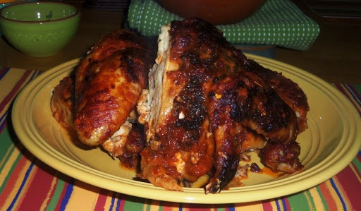 Roast the chicken, basting with adobo sauce every 15 minutes. Roast for about 50 minutes or until an instant-read thermometer inserted registers an inner temperature of 180ºF.