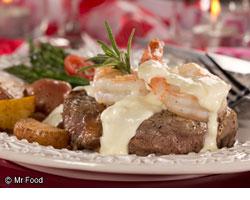 Stir in cream and parsley and cook just until hot. Serve sauce and shrimp over steaks.