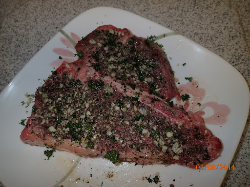 Combine seasoning ingredients in a small bowl, press evenly onto beef steaks.