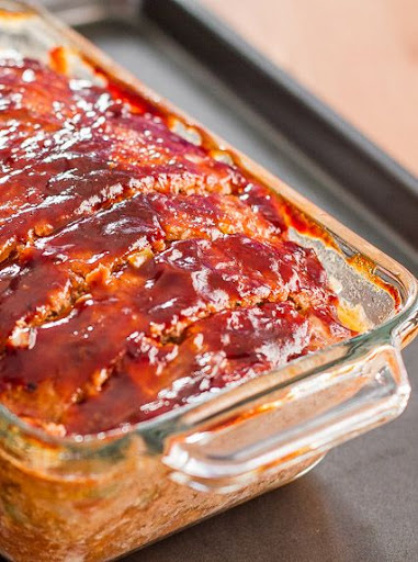 In a loaf pan that’s oiled really well, and add the meat mixture. Put the remainder barbecue sauce on top of the meatloaf.