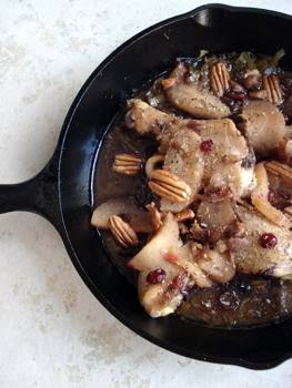 Pour 1/4 cup warm water and 2/3 cup pure apple cider into a sauce pan, add about 1 1/2 TBSP brown sugar and 1/2 tsp cinnamon. Then add about 1/3 cup roughly chopped pecans. Cook on medium/high for about five minutes (without apples). Then lower flamer to low, add apples and 1/3 cup cranberries and cook for about 5 minutes (you don't want them too soft, just cook until they are slightly soft but still somewhat crunchy).