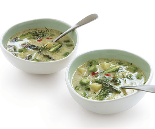 This creamy-tangy vegetarian chowder makes the most of each spear: The tough ends flavor a light asparagus stock, and the tender stalks and tips go into the chowder.