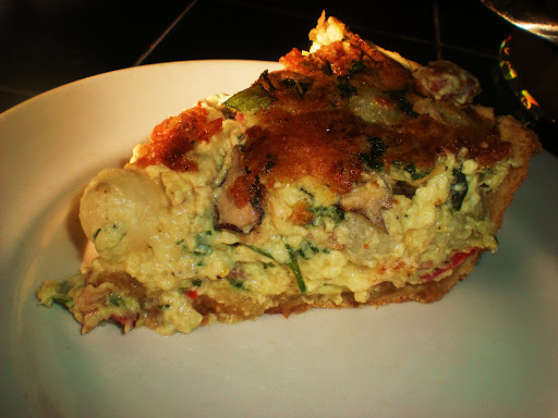 Bake 10 minutes in a preheated 400 degree oven, reduce to 350 bake another 40-50 minutes when center of quick=he has risen the quiche will be done. Let cool for at least a half hour. Serve