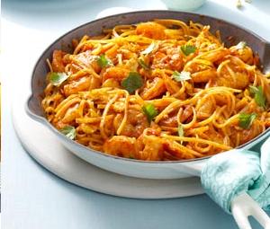 Add the marinara, soy sauce and brown sugar; heat through. Return shrimp to the pan. Drain noodles; toss with shrimp mixture.