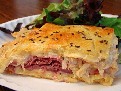 Crescent rolls are used for this tasty bake crust filled with sliced corn beef, sauerkraut and Swiss cheese. If you like reuben sandwiches, you'll LOVE this Reuben Crescent Bake!