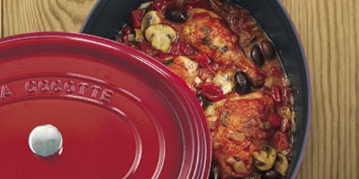 Return chicken and any juices that have collected to the Dutch oven. Nestling the chicken into the simmering sauce. Cover and cook 25 minutes.