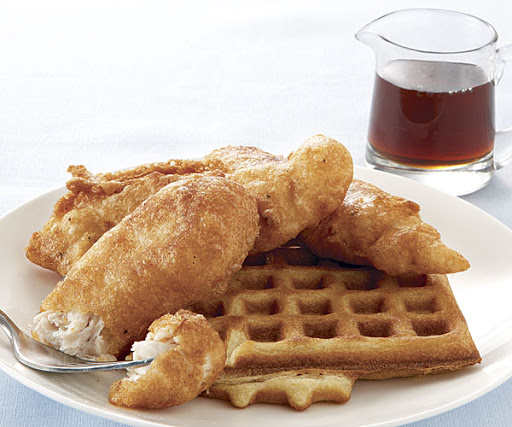 Cook the waffle batter in batches according to the manufacturer’s directions until golden and crisp. Set aside while cooking the chicken.