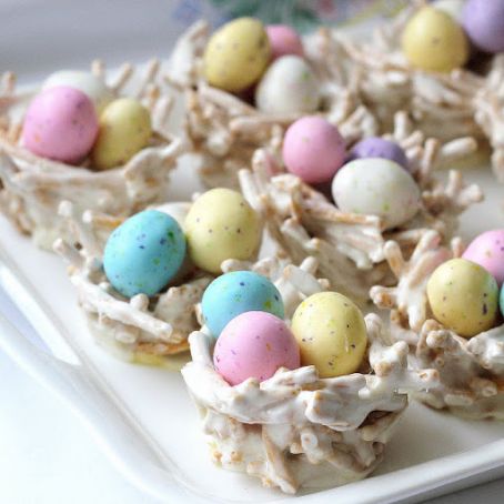 Place on a lightly buttered serving plate or a plate lined with parchment paper or wax paper so nests won't stick.