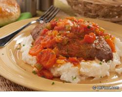 Remove the steak from the skillet and set aside. In the same skillet, heat the two remaining tablespoons of oil over medium-high heat and sauté the celery and onion for about 5 minutes or until tender. Add the carrot slices and spaghetti sauce and mix well. Add the steak to the mixture, reduce the heat to low, and simmer (uncovered) for 10 minutes or until warmed through.