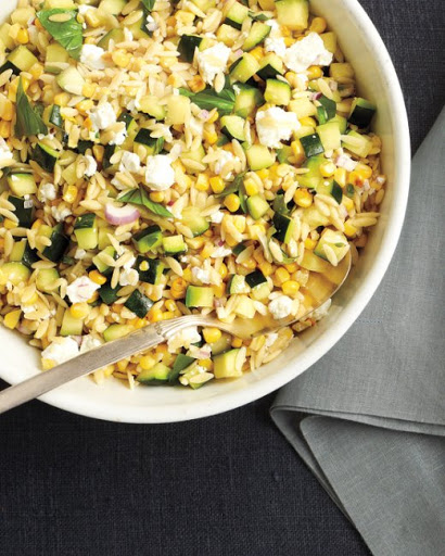 Place zucchini in a colander and toss with salt. Place colander in sink and let sit 20 minutes. Meanwhile, in a large pot of boiling salted water, cook orzo according to package instructions. Drain and rinse under cold water to stop the cooking; transfer to a large bowl.