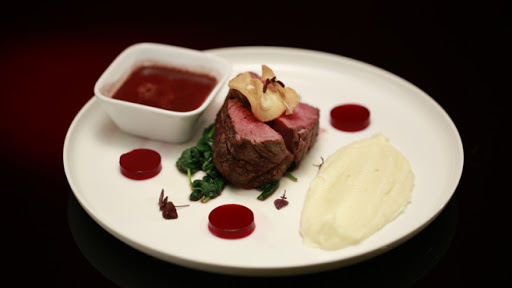 Beef Fillet with Parsnip Purée, Beetroot & Red Wine Discs and Red Wine Jus