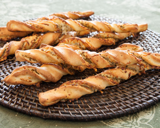 The delicious taste of pesto and parmesan cheese fill these breadsticks with flavor.