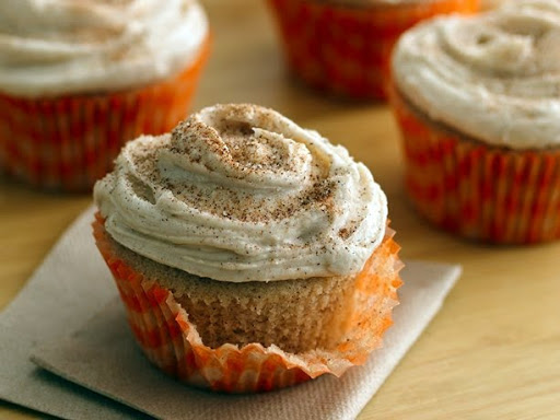 6. In large bowl, mix powdered sugar, 2 teaspoons cinnamon and the butter with electric mixer on low speed. Stir in 1 tablespoon vanilla and 2 tablespoons milk. Gradually beat in enough remaining milk, 1 teaspoon at a time, to make frosting smooth and spreadable. Frost cupcakes. In small bowl, mix garnish ingredients; sprinkle over frosted cupcakes.