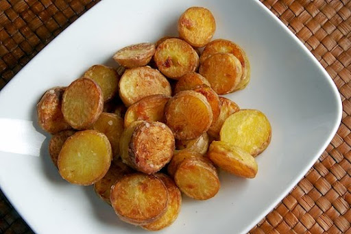 - 2 1/2 pounds Yukon Gold potatoes, rinsed and cut into 1/2 inch slides