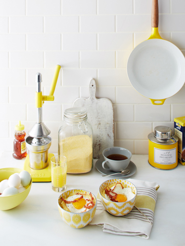 4. Divide cooked polenta among 4 bowls and top each with an egg and frizzled ham. Season with salt and pepper to taste.