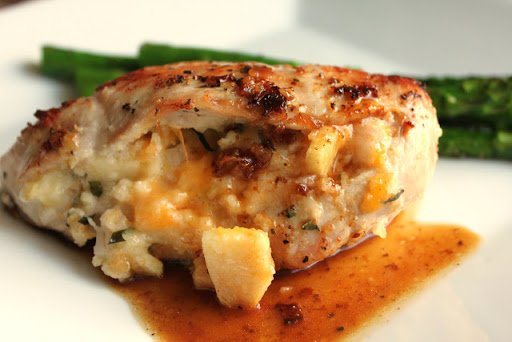 Pat chicken dry. Cut a pocket in each chicken breast (or butterfly each chicken breast)