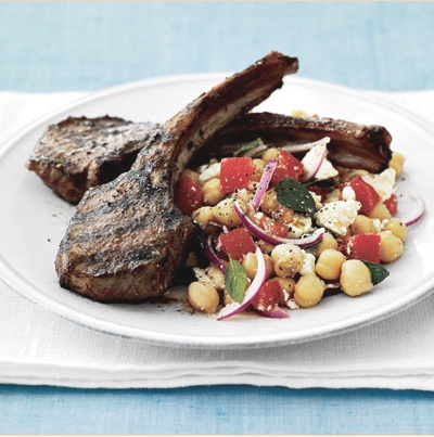 Serve on a salad of chickpeas tossed with chopped tomatoes, red onion, and feta, with a handful of fresh mint leaves, dressed in 3 Tblsp of olive oil, 2 Tblsp fresh lemon juice, and freshly ground pepper to taste.