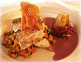 Carefully spoon Buerre Rouge around the fish, covering the bottom of the plate.