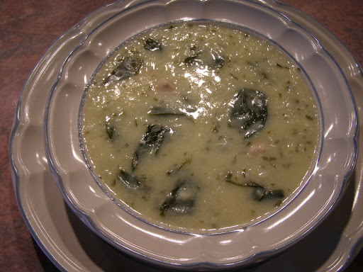 Beat the eggs. Slowly add the lemon juice to egg mixture continuing to beat. Slowly pour 1 cup hot soup into the egg mixture while beating. Then slowly pour egg mixture back into the pot of soup, stirring vigorously. Cook over low heat for 4-5 minutes, stirring until slightly thickened. Add another 2-3 cups of water if too thick. DO NOT BOIL as this mixture will curdle.