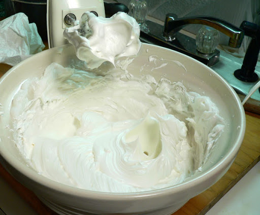 Add the Vanilla Extract and beat another minute or so to incorporate the vanilla. Continue to beat only as long as needed to form firm peaks.