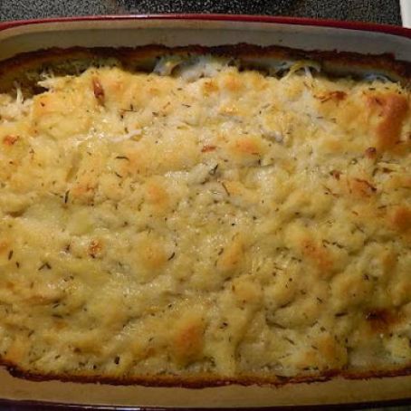 Melt 1 stick butter and pour into 3 quart baking dish.