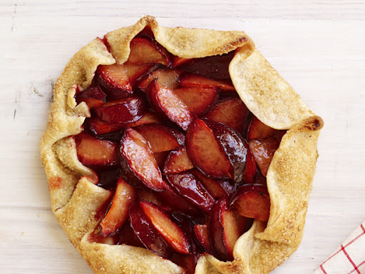 Preheat the oven to 425 degrees F. Let the dough soften at room temperature for 10 minutes. Line a baking sheet with parchment paper. Lay the pie crust on the parchment paper. Spread the fig jam on the crust, leaving a 2-inch clean border around the edge. Arrange the plums on top of the jam. Fold the crust's edge inward, pleating as needed; leave the center of the tart exposed. Press the dough lightly to seal.